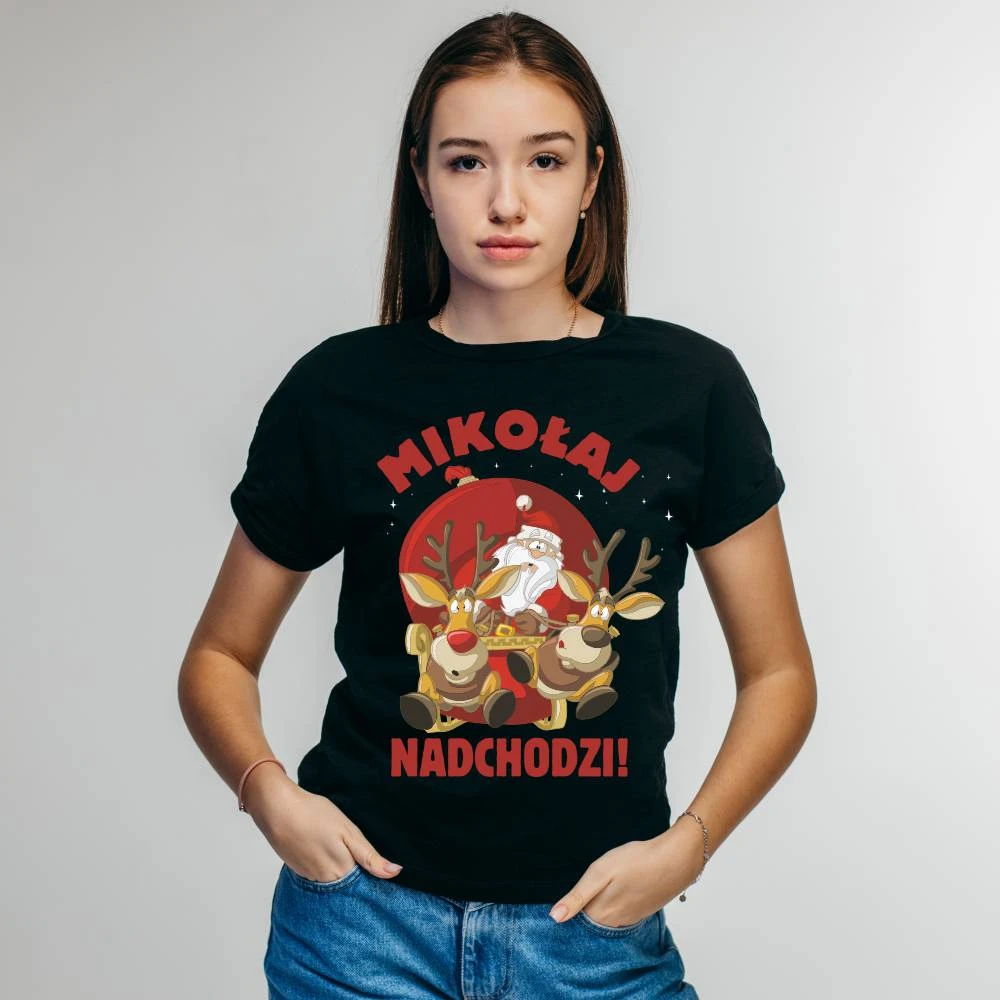 Koszulka Damska Świąteczna Mikołaj Nadchodzi