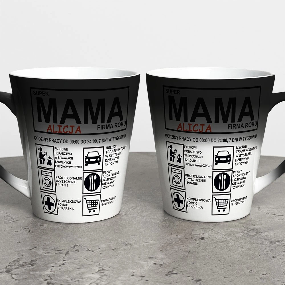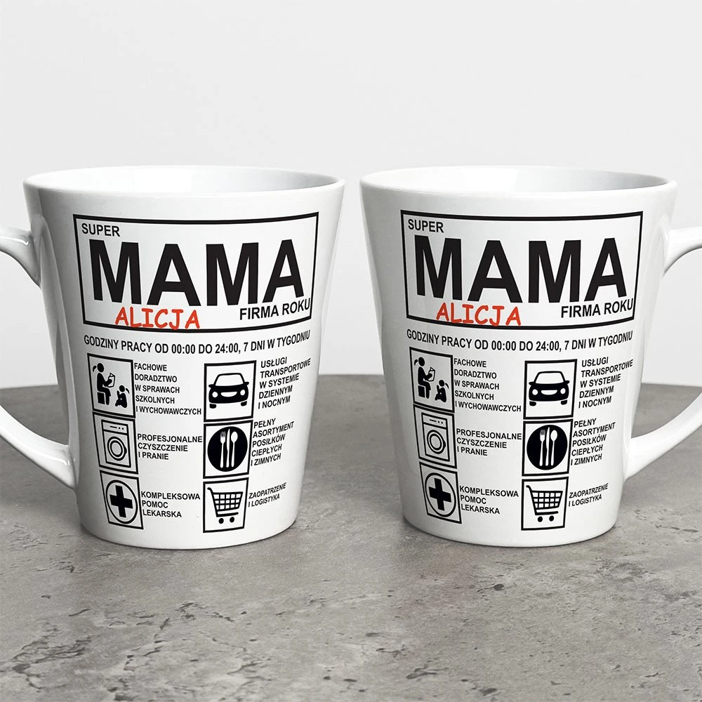Podaruj mamie coś wyjątkowego i stylowego! Kubek latte na Dzień Mamy z imieniem to elegancki prezent, który łączy w sobie nowoczesny design i osobisty charakter. Dzięki personalizacji w postaci imienia, codzienna kawa lub herbata nabierze jeszcze bardziej wyjątkowego smaku.
