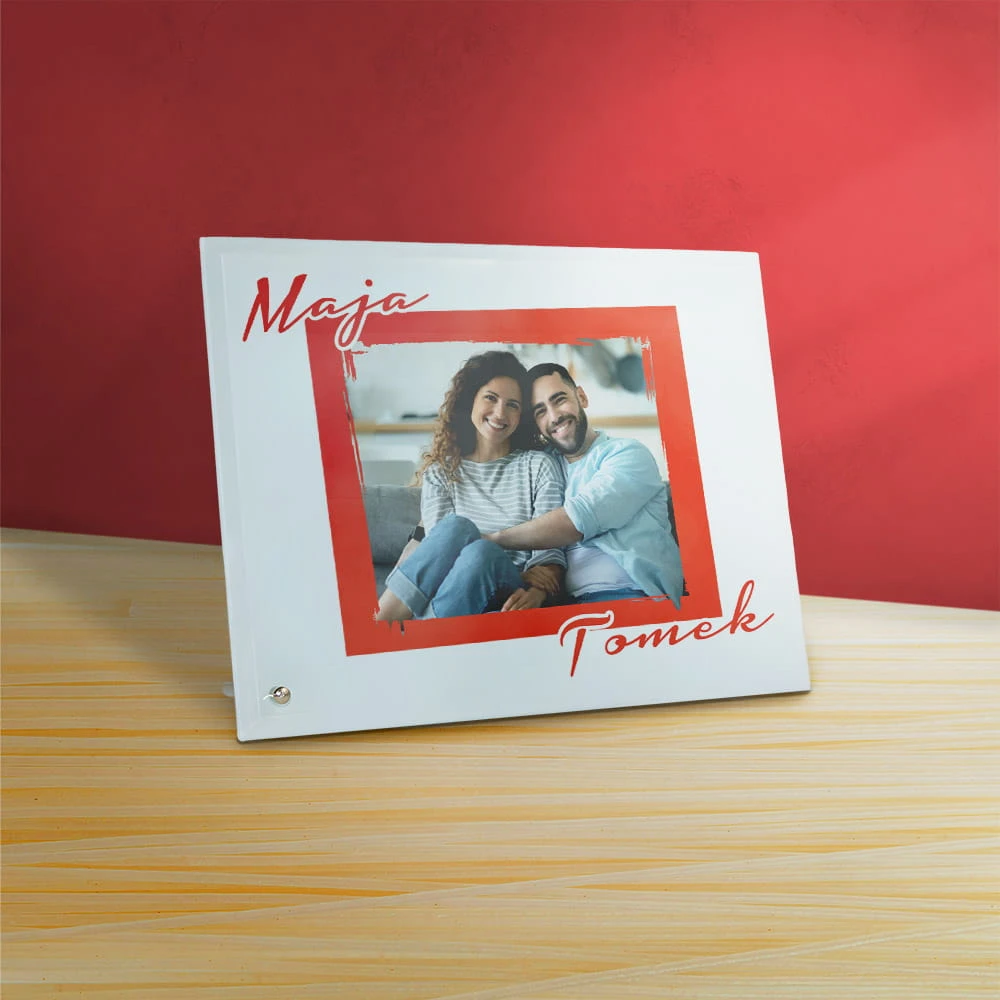 Ramka Na Walentynki Ze Zdjęciem i Imionami Na Szkle